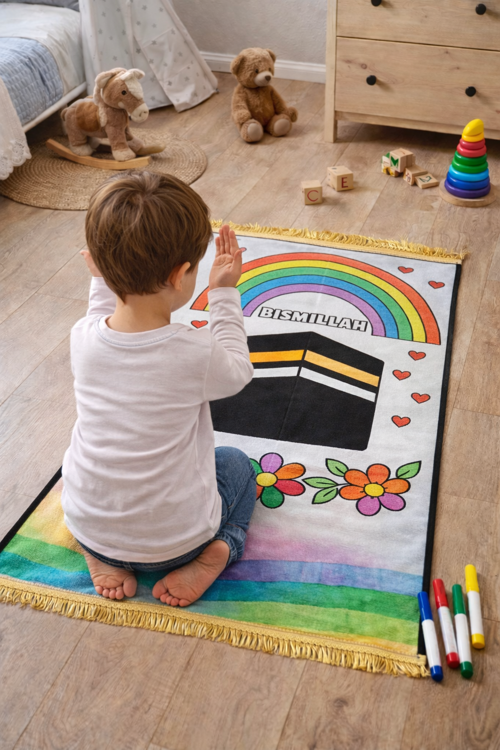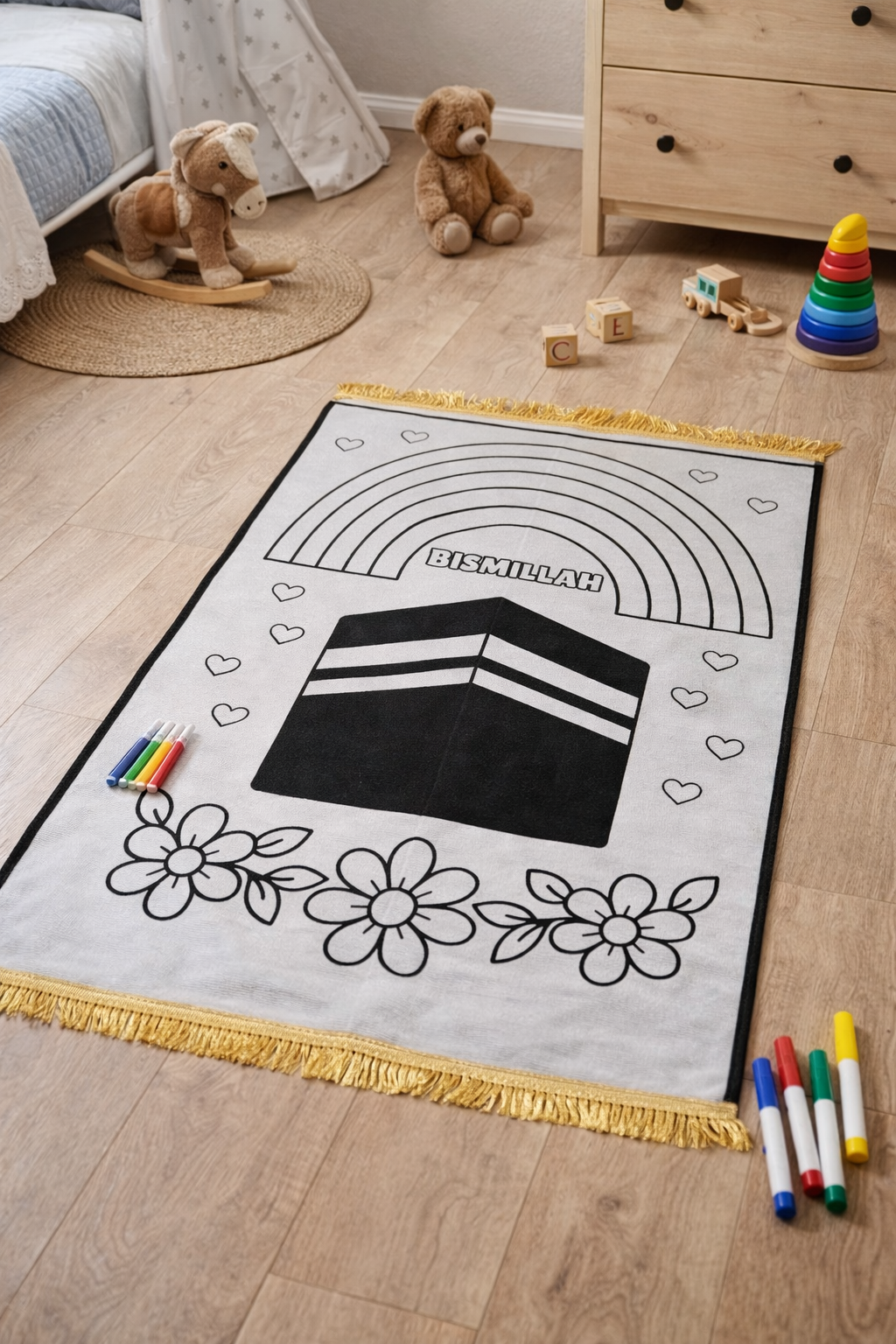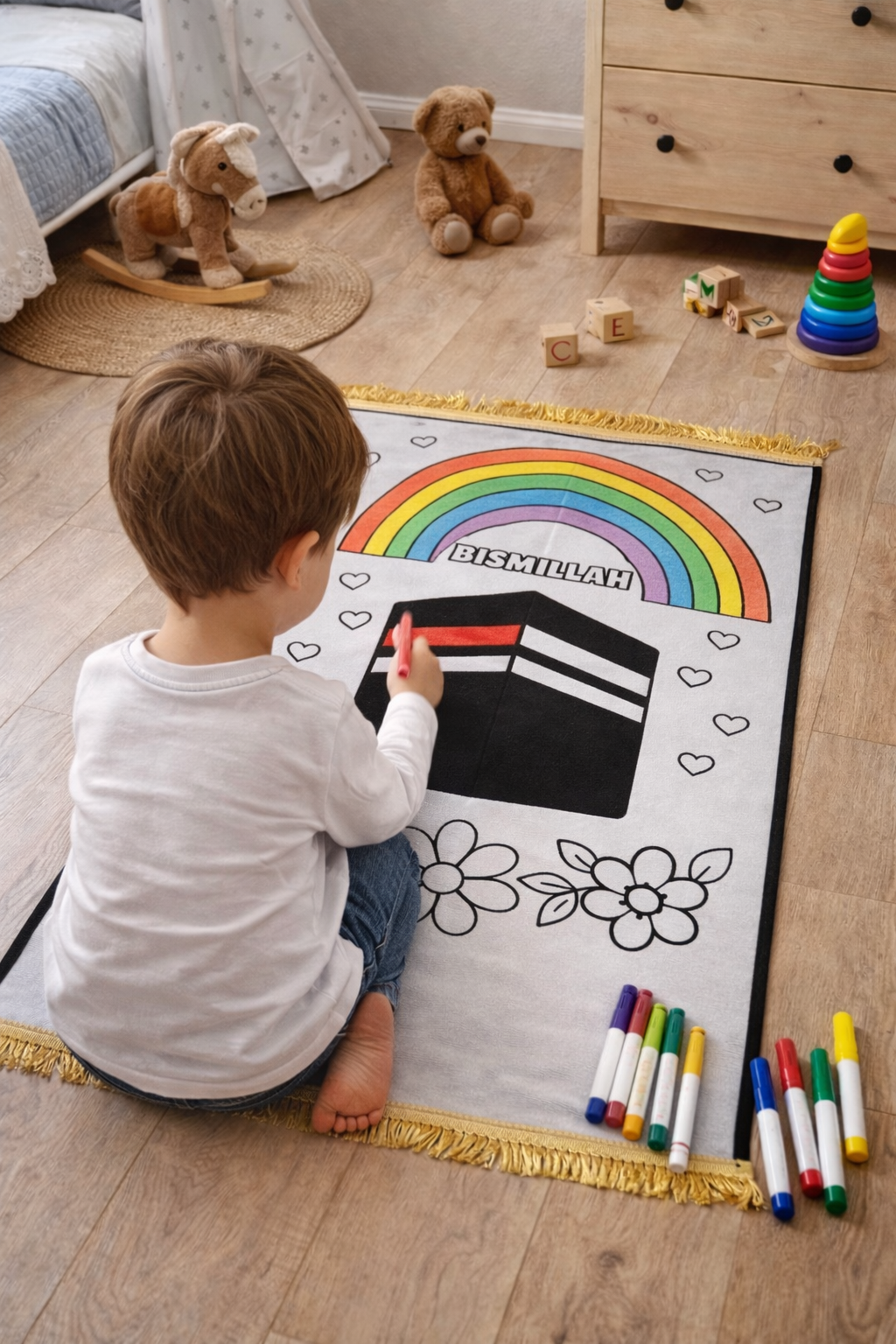 + Frais de portEn coloriant son tapis, l’enfant se l’approprie, le reconnaît comme son espace de prière, et développe naturellement l’envie de l’utiliser.